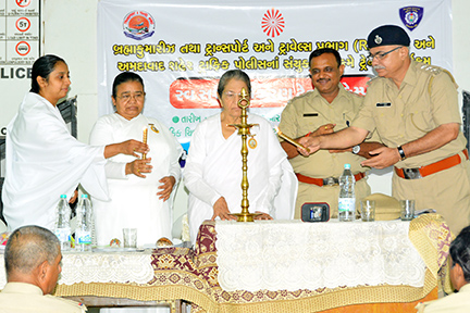 This special three months programme plans to reach out to the traffic police officers, support staff and drivers within the city. This Self-Empowerment programme comprises of a two hour training module mainly covering the theme of empowering the self to effectively manage stress, the practice of meditation and de-addiction. BK Sarla Didi - Gujarat zone in-charge - Brahma Kumaris inaugurated the programme with powerful blessings. BK Nanda and BK Nandini conducted the various sessions. This programme was also attended by Bro. Dinesh Parmar - Traffic DCP and Bro. R.S. Singi - ACP of the Ahmedabad Traffic Police. Every day about 50 new participants will attend these sessions. The talks include powerpoint presentation, video show, value games and question-answer sessions.